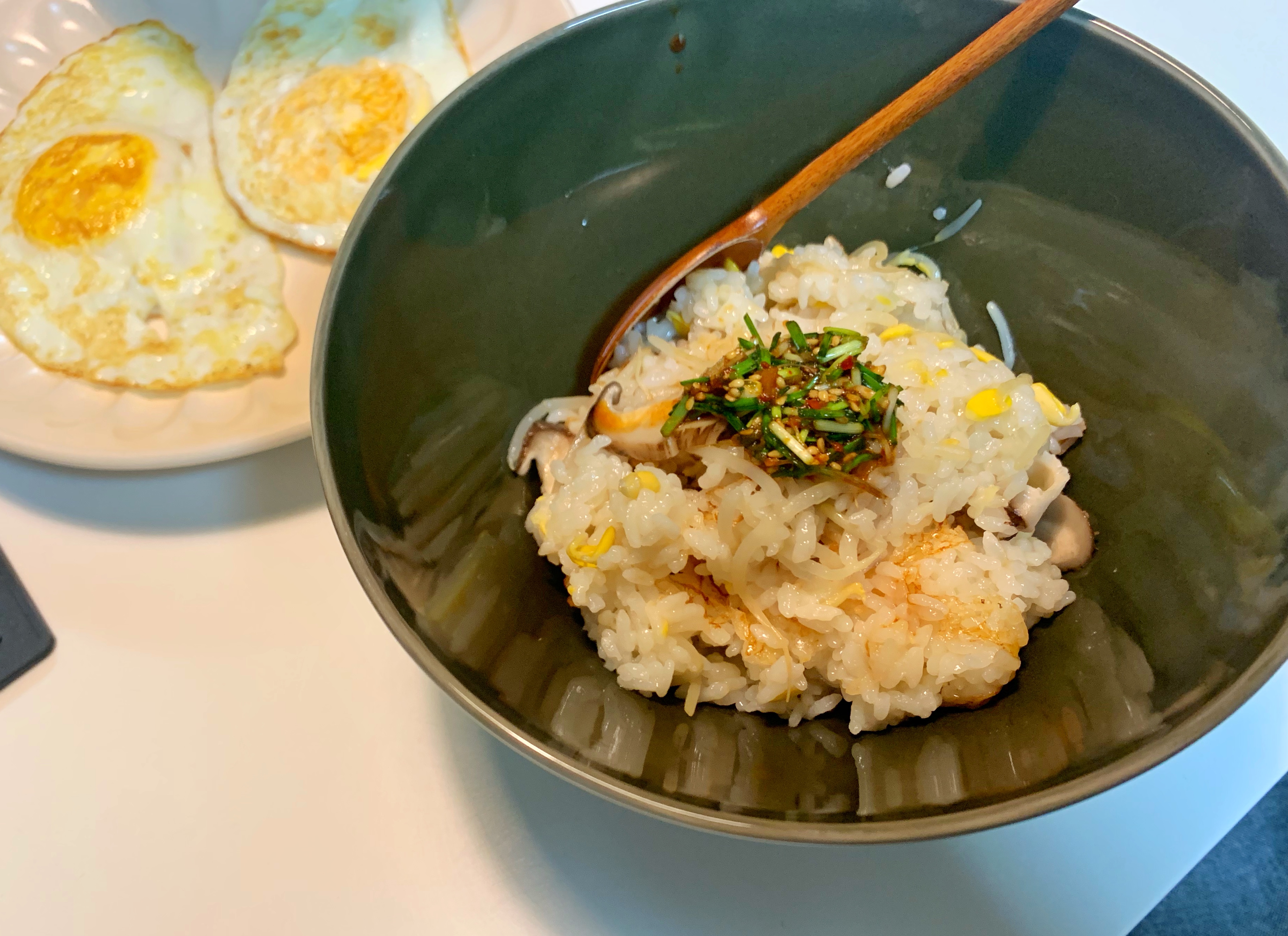밥만 할 때보다 물을 적게 넣었는데, 더 적게 넣어도 될 뻔.