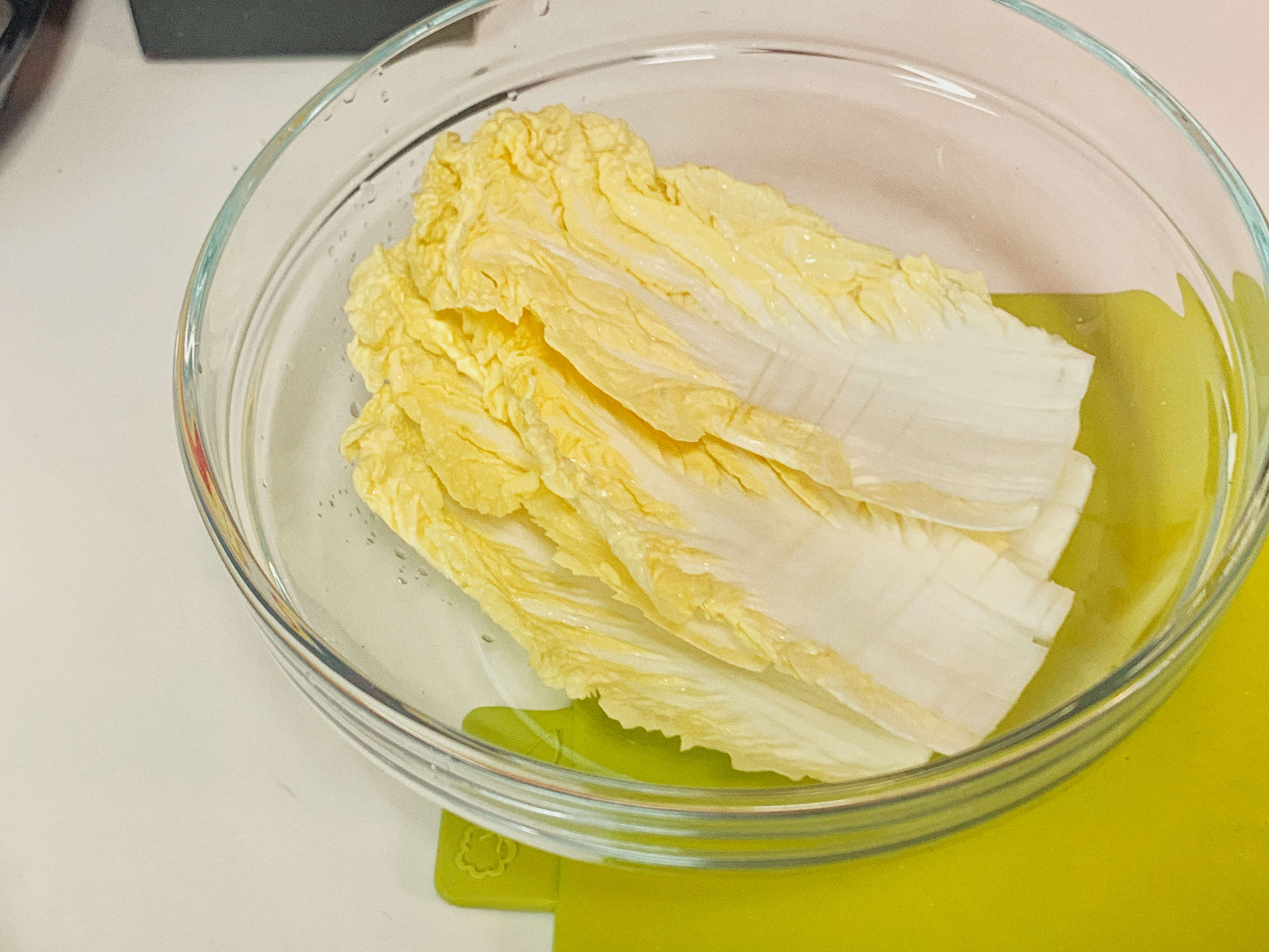알배추 몇 장을 준비해서 깨끗이 씻어준다.