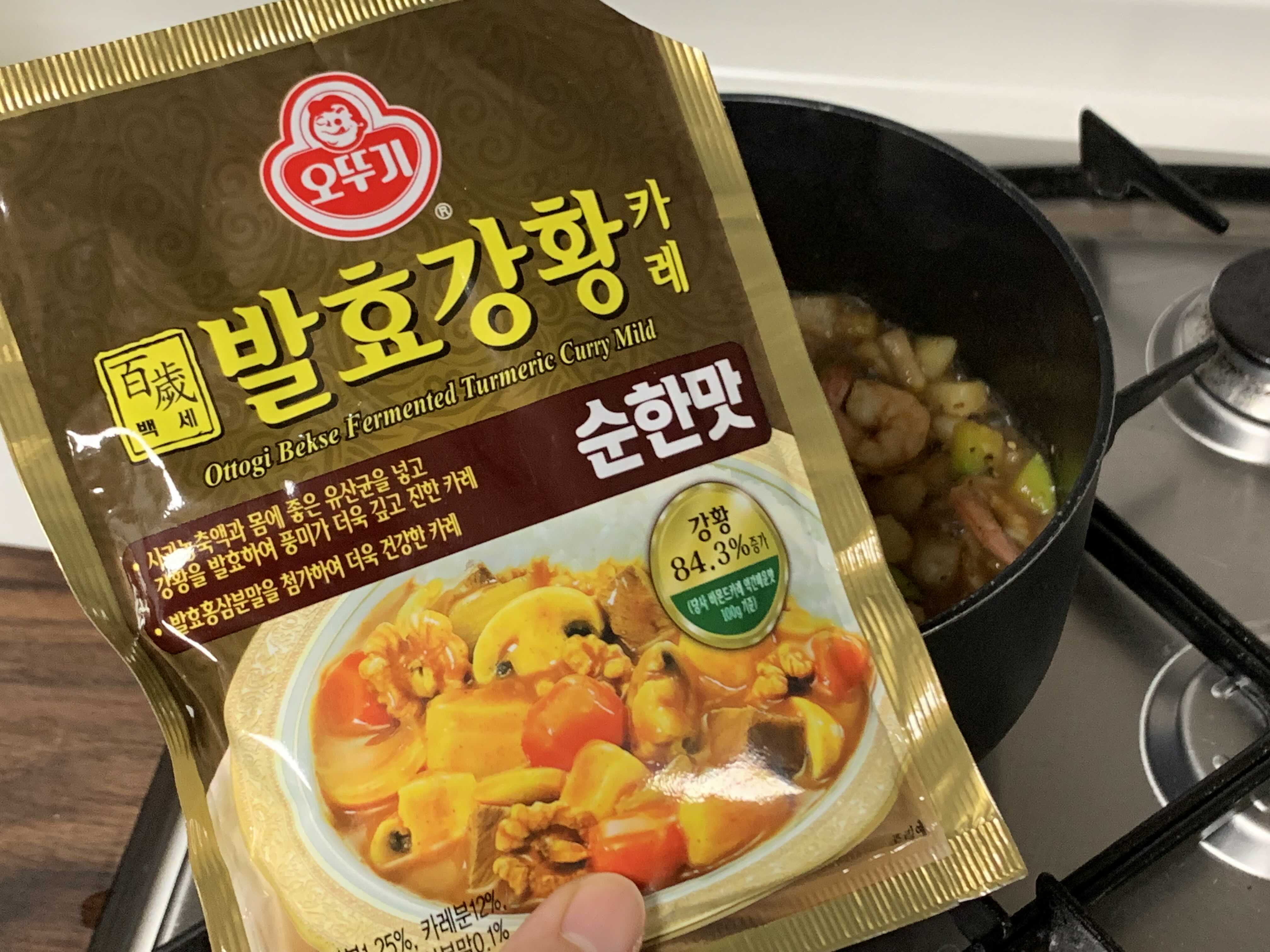 저는 흔한 오뚜기 카레 가루를 넣어줬는데, 카레 브랜드는 다양하니 원하시는 카레로 준비해서 넣어주시면 됩니다!!