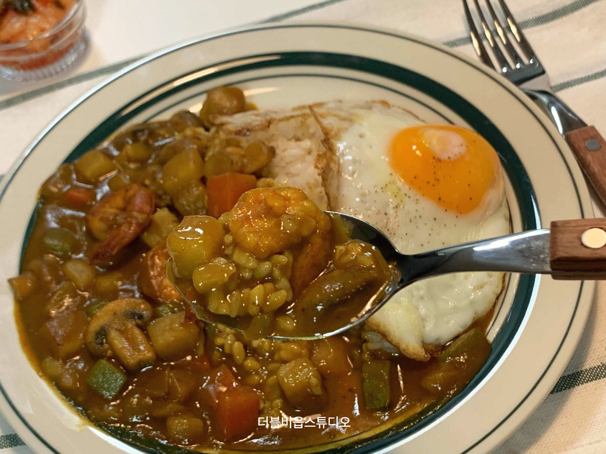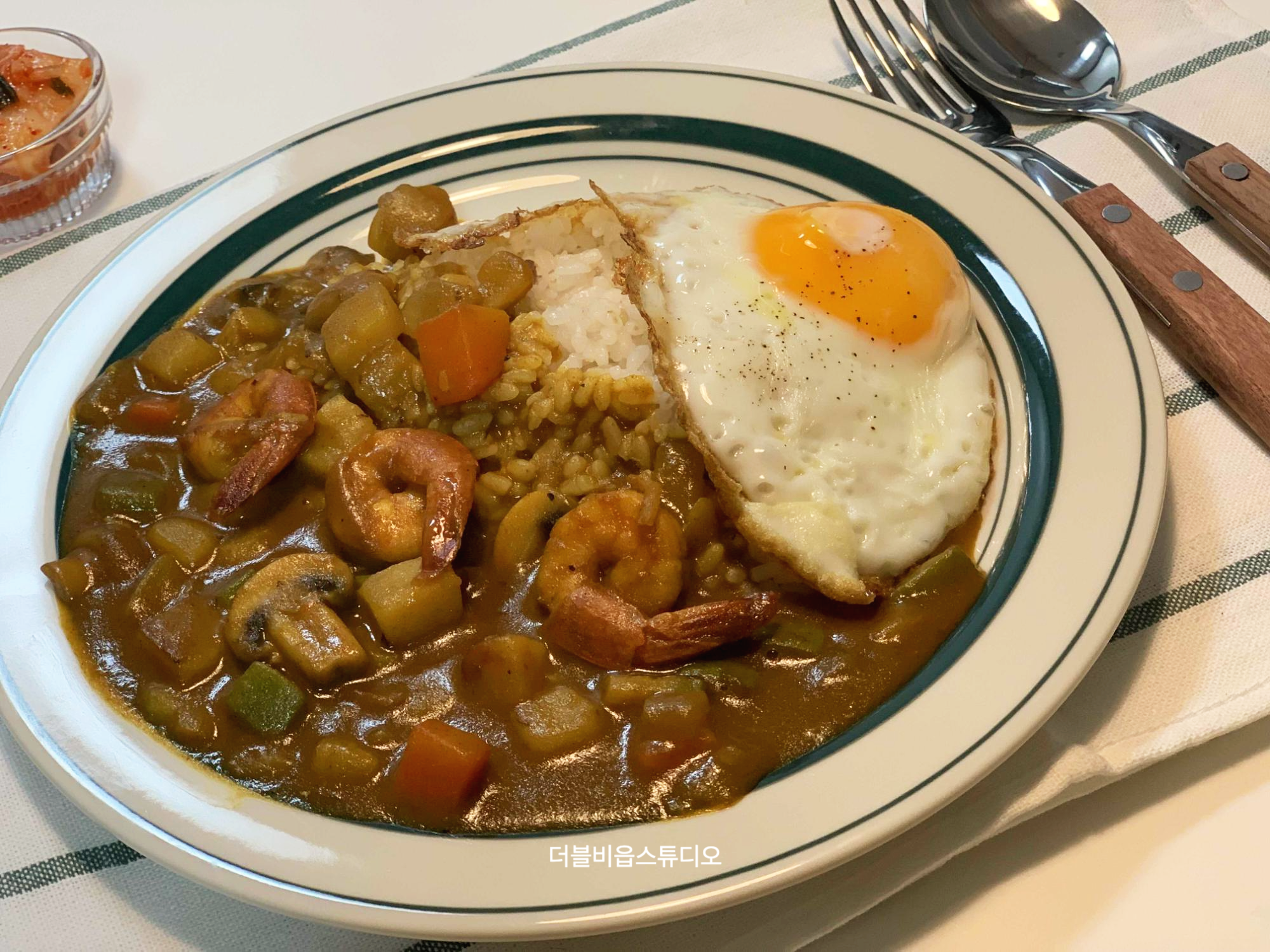 새우 카레니까 새우도 나름 예쁘게 보이도록 올려주었어요.