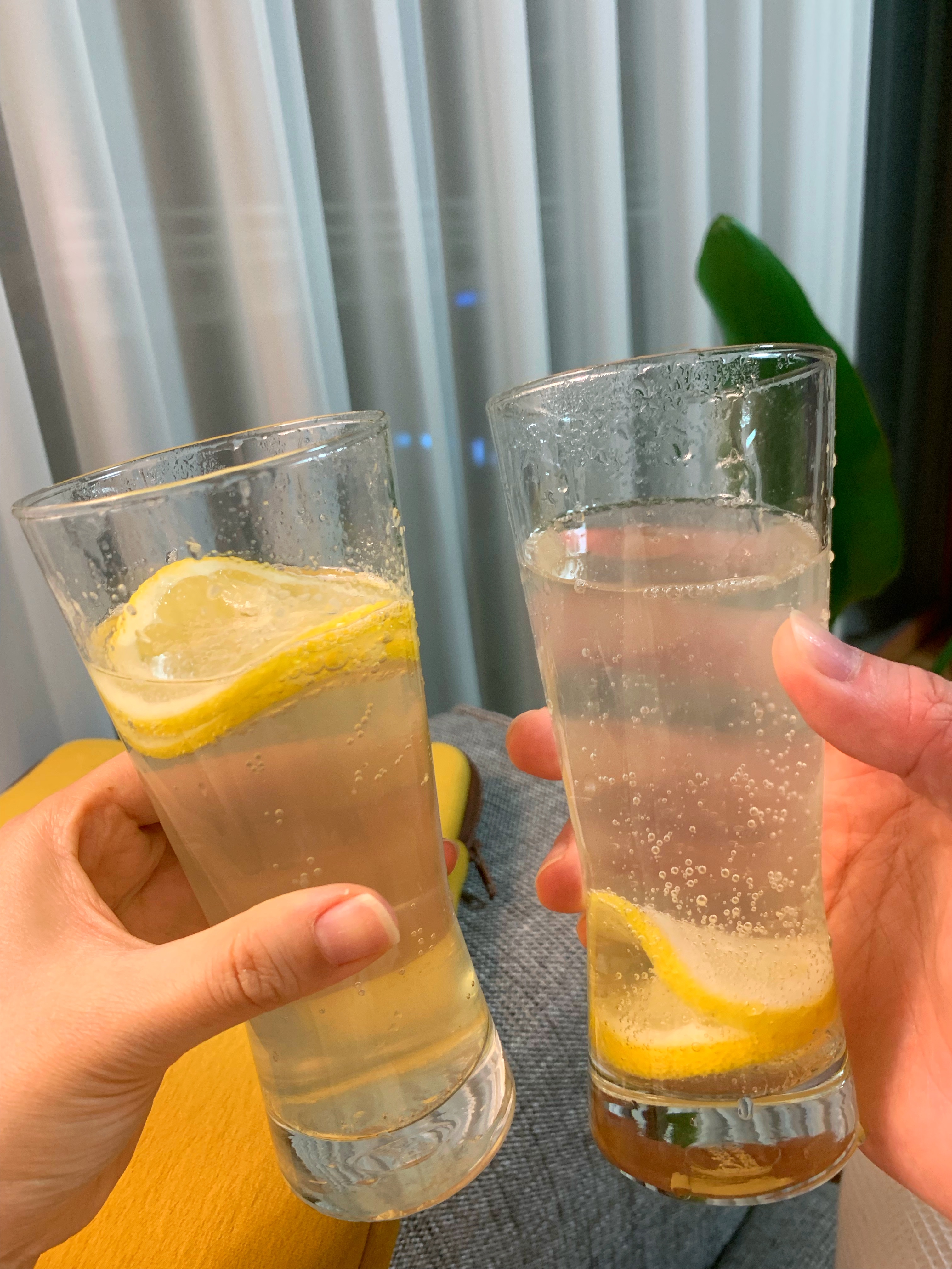 남은 레몬 조각 + 꿀 조금 + 탄산수 부어서